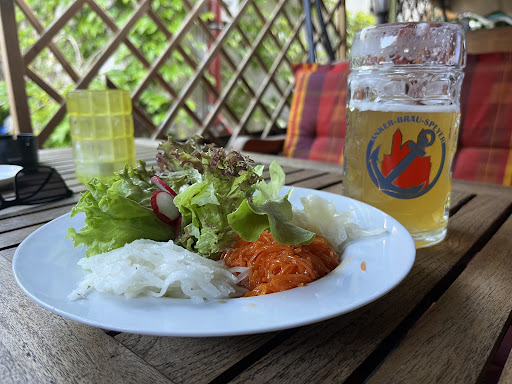 Read moreImmerwieder gerne gehe ich zum Anker in Speyer. Ob im Winter oder Sommer, drinnen mit gemütlichem Brauerei Flair oder draussen zwischen dem unglaublich großen Baum im schönen Garten. Nicht nur das Ambiente macht dieses Restaurant zu dem was es für mich ist, auch das Essen spielt eine sehr große Rolle. Nirgendwo habe ich ein besseres Schnitzel, Cordon Bleu oder Rumpsteak gegessen als dort. Dazu noch ein Anker Gold Bier aus der eigenen Brauerei und der Tag ist gerettet. Sogar meine vegetarisch veranlagte Freundin kommt dort nicht um das Schnitzel rum. Die Qualität ist immer gleich und die Bedienungen sind immer auf Zack, egal wie voll dort ist. Ganz klar 5 Sterne von mir. Update: 1 Stern weniger. Der Grund dafür ist, das Jahrzente lang ausgeschenkte Anker Gold Bier. Das gibt's aktuell leider nicht mehr, zumindest nicht mehr so wie es war. Verkauft wird es weiterhin als Anker Gold, das gute selbst gebraute erfrischende und richtig goldene naturtrübe Bier, es ist allerdings meiner Meinung nach das Eichbaum naturtrübe Kellerbier was alles andere als Gold ist, es gleicht fast einem dunklen Bier. An sich garnicht so schlimm, jedoch wurde beim Nachfragen behauptet das Bierrezept wurde dauerhaft angepasst, es ist das original Anker Gold und gleich im Geschmack, was es meiner Meinung nach keineswegs ist. Nach diesem Bier wurde ich auch nicht mehr gefragt ob ich noch eins möchte obwohl wir längere Zeit gegessen haben und ein leeres Glas da stand. Deshalb leider ein Stern Abzug, sehr schade da wir seit Jahrzenten Stammgäste sind und es für uns immer etwas besonderes war, allein schon wegen dem...