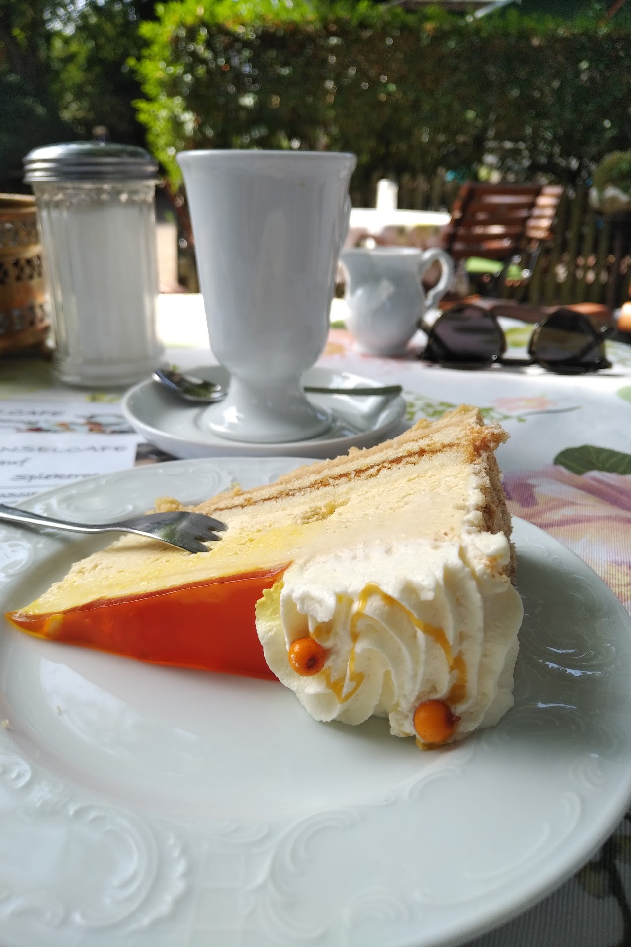 Read moreCafe and bakery located along the main road with a decently sized patio with good shade from the strong sun. The prices are quite high for coffee (3,90€ for a cup of black coffee or 4,50€ for a "pot" that is hardly larger than the cup of coffee) makes this place hard to recommend. The signature cake (Sandorn cake) was rather disappointing despite being the speciality tasting rather plain and without real substance. Cards not accepted...