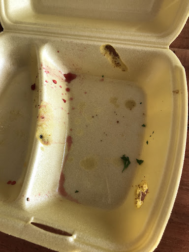 Die Nudeln waren gut, aber der Salat war nix, bzw. die Sosse davon und die Eier waren komplett gebacken, es waren also keine Spiegeleier mehr.