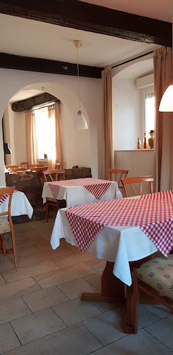 Read moreFür Leute von außerhalb ist das Eintreten schon ziemlich kompliziert, da man in einen Seiteneingang eintritt und die Thekentür links zu ist, ohne Beschilderung, sodass man auf gut Glück eingetreten ist. Ich wusste die ganze Zeit über nicht ob ich dort richtig stehe. Und statt ein Restaurant anzutreffen, wie es im Hotel ausgeschildert war, gab es diese kleine dunkle Theke. Aber es ist wohl in diesem kleinen gemütlichen Dorf nebensächlich. Die Pizza war definitiv ein Hausrezept, aber ich hab echt nicht hinbekommen mehr als die Hälfte zu essen, da mir das ganze viel zu wabbelig war und meine Erwartungen leider so gut wie gar nicht erfüllt...