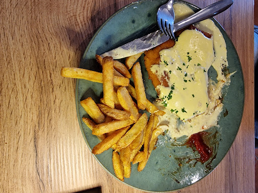 UPDATE 2: Mein Mann und ich waren heute (27.3.22) seit dem letzten Mal von Juni 2021 mal wieder hier, um dem Lokal eine weitere Chance zu geben. Ich bin froh, dass es hier seit Januar 2022 einen neuen Besitzer bzw eine neue Mannschaft als Bedienung gibt. Unser Essen, ein Cordon Blue mit Pommes und gegrilltem Gemüse und Bärenhöhle Schnitzel mit Kroketten waren erfreulich lecker. Das Schnitzel besteht aus zwei kleinen, dünnen und nicht trockenen oder zähen Schnitzel. Die Soße ist würzig und schmackhaft. Die Kroketten sind super weich und schmecken so, als ob man in frisches Kartoffelpüree beißen würde, nur eben paniert. Das Cordon Blue "könnte" etwas größer sein für 14.90€, schmeckt aber super und das Gemüse (gebratene) schmeckt bestimmt besser, wenn es mehr angebraten ist und weniger Öl hat. Diese Verbesserungsvorschläge habe wir direkt mit der Bedienung angesprochen. Es war auch schön, den neuen Besitzer/Koch kennenzulernen und mit ihm zu reden. Nach dem heutigen Erlebnis wünschen wir dem Team einen guten, erfolgreichen Start und kommen gern wieder.