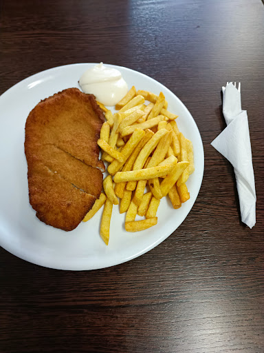 Bestellt wurde ein Schnitzel Wiener Art, Pommes und Majo, den dazugehörigen Salat habe ich abbestellt und musste ihn auch nicht bezahlen. Leider war das Essen etwas lieblos auf einen großen Teller geklatscht. Die Qualität des Fleisches war wirklich gut und saftig. Die Panade war auf der Unterseite zu dunkel, was man geschmeckt hat, aufgrund der zwei Schnitte im Fleisch ist jedoch anzunehmen das es nicht anders ging.