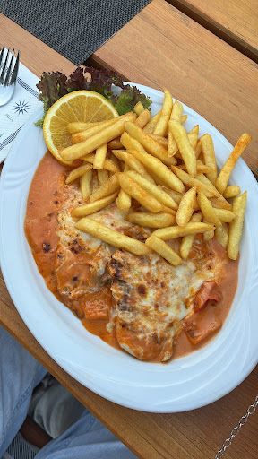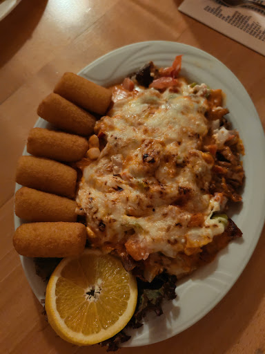 Jedoch hätten wir auch einige Kritikpunkte, wie zum Beispiel: Die Portion des bestellten Zaziki empfanden wir als sehr klein. Es gab auch lediglich zwei Scheiben Brot dazu (Wir kennen es nur mit vier Scheiben) Die Metaxasauce empfanden wir als eher dünn und fad vom Geschmack - Es fehlte irgendetwas. Der bestellte Tomatenreis wirkte wässrig. Die Chickennuggets sahen lecker aus, Auch die Panade hat geschmeckt. Das Fleisch schmeckt jedoch irgendwie fettig (Friteuse?). Auch das Verhältnis zwischen Beilagen und Fleischgericht wirkte für mich unausgeglichen. Ich persönlich hätte mir mehr Beilage und weniger "Hauptspeise" gewünscht. Man muss jedoch dazu sagen, dass das gesamte Essen angenehm satt gemacht hat. Zusammenfassend war das Essen okay gewesen, wir würden jedoch nicht noch einmal den weiten Weg...