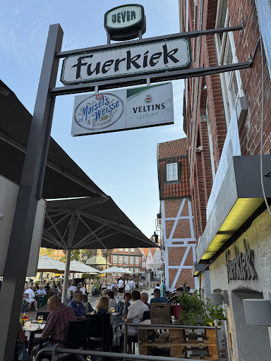 Ich lehne mich ein wenig aus dem Fenster... aber bin mir dennoch sicher, das das Fuerkiek die beste gastronomische Einrichtung der Stadt Stade ist, die jetzt nicht in die Rubrik (Nur)-Restaurant fĂ€llt... die Lage ist natĂŒrlich einzigartig... direkt am schönen Hafen der wunderschönen Hansestadt... ich war an zwei Tagen hintereinander da... im Sommer auf der Terrasse bei bestem Sommerwetter und war jeweils begeistert... 4 Sorten Bier vom Hahn... sogar Guinness aus der Dose, bis spĂ€t Essen möglich, dann noch Ă€uĂerst freundliches Personal und zwangloser Kontakt mit einheimischen StammgĂ€sten. Auf der Website vom Fuerkick kann man lesen, das die Wirtin Angela das seit 1999 betreibt... ich habe groĂen Respekt davor... ich bin selbst Gastronom einer Berliner Kneipe... seit 2000. Schön zu sehen, das es noch so geile LĂ€den gibt... ich hoffe das Fuerkiek...
