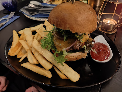 Read moreWir waren spontan da ohne Reservierung. Also der Laden: Stylisch/ modern und die Bedienung sehr nett und Bemüht. Aber ich hatte als Vorspeise das Lachstatar mit Mango und Advocado. Es kam opisch sehr ansprechend präsentiert an den Tisch. Mein Eindruck vom Geschmack war ok, aber bei eimem Lachstatar erwarte ich das die Hauptzutat der Lachs ist und nicht irgend was anderes. Zumindest habe ich den Lachs kaum wahrgenommen. Als Hauptgang hatte ich dann einen Burger mit Fritten und Mayonnaise bestellt. Er kam dann mit Ketchup. Den brauchte ich auch dringend, da der Burger sehr trocken war. Insgesamt war die Portionsgröße dürftig. Ich habe im Anschluß noch eine Portion Fritten gegessen. Zum Getränk. Ich habe 3 Flensburger dunkel als Flaschenbier bestellt. Die ersten 2 kamen auch kühl an den Tisch. Das dritte hatte Raumtermperatur. Meine Lebensgefährtin war mit Ihrem Essen so weit zu frieden. Als Dessert hatte Sie Pancakes mit Ahornsiriup. Geschmacklich ok, was echt schlecht war, das man die Pancakes auf einer ebenen Schieferplatte auf einen sehr schrägen Tisch gelegt hat. Der Sirup floss von der Platte zwischen die Ritzen des Tisches. Gott sei Dank sind die Tische so, das man mit den Beinen nicht drunter kommt, sonst hätten wir den Sirup auf den Beinen gehabt. Das Ambiente und die nette Bedienung haben es noch rausgerissen. Ich müsste da nicht unbedingt nochmal essen, aber abends sitzen und was...
