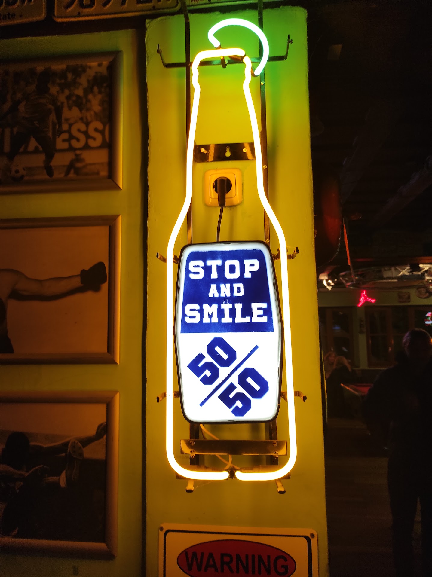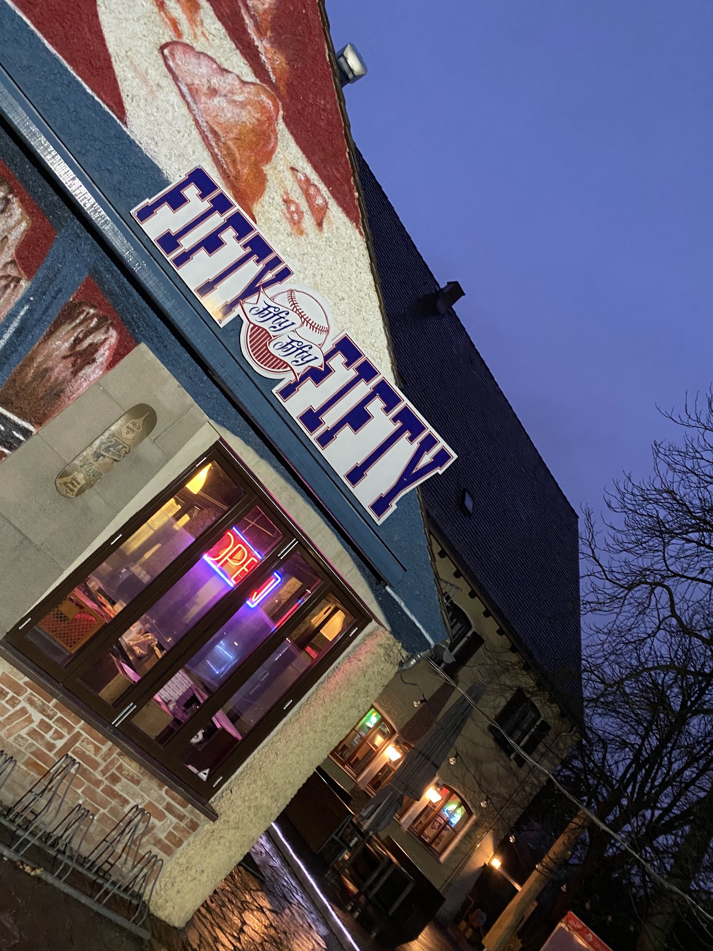 Read moreIm ehemaligen Stadtberger Hof hat schon vor vielen Jahren das Fifty-Fifty seine Heimat gefunden, eine American Sports Bar mit entsprechendem USA-Food, Tex-Mex und ein wenig deutscher Küche. Die Karte ist sehr umfangreich, neben Pizza und Burgern (auch Veggie) gibt es Steaks, Salate, Fajitas und anderes mexikanisches, aber auch Wurstsalat und Schnitzel. Nach vielen Besuchen muss ich feststellen, dass ich mittlerweile oft auf meine Favoriten zurückgreife: Chicken WIngs oder Quesadillas. Beides wirklich sehr lecker, als Side Order gerne das Knoblauchbrot. Für Kinder gibt es eine Extra-Karte mit Rückseite zum Ausmalen. Bier von der Brauerei Unterbaar ist gut, Getränketipp: Homemade Mexican Beer. Service: * - immer freundlich und präsent sowie schnell. War noch nie unzufrieden. Location: Innen im Stil einer American Sportsbar eingerichtet, mit Neonschildern und allerlei USA-Deko. Billardtisch und Dart vorhanden. Es werden Sportevents wie z.B. Bundesliga gezeigt, an solchen Tagen ist innen oft ausreserviert. Aussen wunderschöner Biergarten mit alten Kastanien, Highlight für Familien ist der recht grosse Spielplatz, der direkt an einige Tische grenzt. Der wird rege frequentiert, weshalb es manchmal etwas lauter werden kann, aber für Familien mit Kind ist das natürlich spitze. Im Sommer muss man sich die Kühlgetränke selber holen, was aber recht flott geht. Preis-Leistung ist absolut OK. Ich kann für das Gesamtpaket hier nur fünf Sterne vergeben, auch wenn das fifty-fifty natürlich keine...