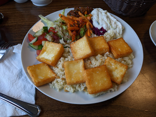 Read moreSehr empfehlenswert. Antalya Döner Kebap hat große Wahn an vegetarischen Gerichten. Jeder findet was für sich. Mitarbeiter sind super freundlich. Die Preise sind auch angemessen. Es ist sauber hier. Man hat viele Optionen, wo zu sitzen. Außerdem habe ich Nachtisch umsonst bekommen. Auf dem Foto ist Halloumi Teller - das war super lecker!