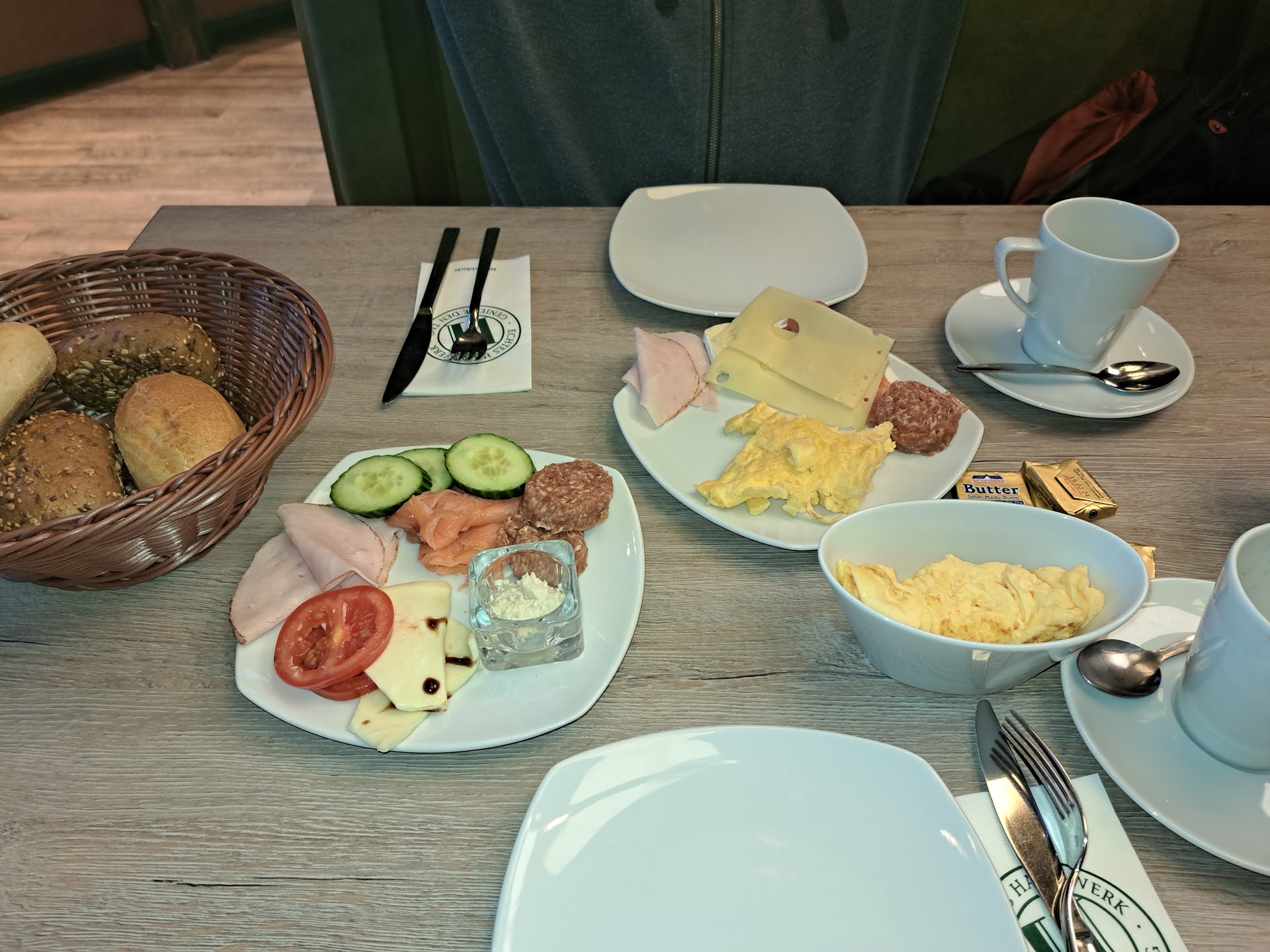 Read moreThis place is very unpersonal as guests are sitting in a hall (old car selling place). The buffet looked good. My friend and me ordered the Hanisch Breakfast. I asked for a breadroll withseads instead of the normal one and marmalade instead of ham, cheese and other meat options. The first plate which they brang had a normal breadroll with margarine and the same jam twice. I asked for the breadroll with seeds again. Then I got a breadroll with seeds with marmalade on top that looked like they had taken it down from the breadroll before and just threw it on the new one. My friend who ordered the normal dish with ham and cheese had decorations with salad and tomatoes on it whereas mine looked just disgusting. The same was the same... Nobody asked how the breakfast was and after my friend helped me to subscribe what I was complaining about, I was offered a drink only. Cannot recommend to go...