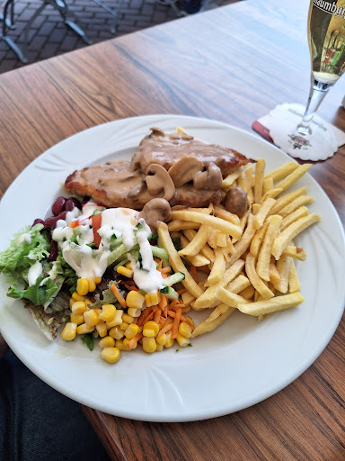 Read moreInmitten der Stadt auf dem Marktplatz gelegen war es mein Treffpunkt für ein Abendessen und Sundowner mit Unterhaltung. Mitten in der Woche war es nicht schwer einen Platz draußen zu bekommen. Die Bedienung war auch angenehm, sowie schnell und regelmäßig für den Service (nicht ständig auf der Pelle aber in guten Abständen zur Hand). Leider muß ich an der Stelle auch sagen, dass ich die Performance im Punkt Essen und Versorgung absolut unterdurchschnittlich empfand. Zur Erläuterung: für mich sah die Mahlzeit in Bezug auf den Preis äußerst lieblos und wenig einladend aus. Ein Eindruck der sich auch bestätigt hat. Und so freundlich man auch formuliert, wenn man nur zu hören bekommt, die Küche ist schon gegangen und hat keine Aussage mehr zum Menü getroffen, und Kaffee gibt's nicht mehr weil die Maschine schon gesäubert ist stimmen mich als generell unwillkommen. Gut für beide Seiten, wenn sich unsere Wege vielleicht hier das letzte Mal...