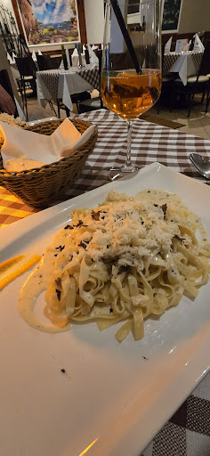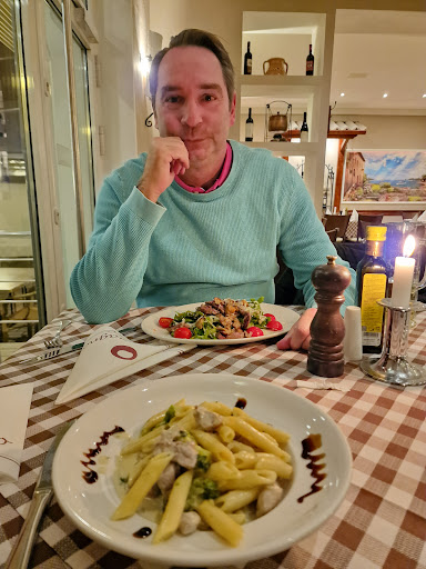 Read moreHatten eine geschlossene Gesellschaft im Nebensaal, daher kann ich zum regulären Betrieb nicht viel sagen. Service kam selten war aber sehr nett wenn auch ab und an etwas sehhhr persönlich. Auch wenn unser Geburtstagskind 103 wurde muss man sie nicht direkt Mama oder Mutti nennen oder Witze auf Kosten anderer Gäste machen die noch nie dort zu Gast waren. Das Kalbsfilet der andern sah nicht nur gut aus sondern wurde auch von allen komplett aufgegessen, bis auf zwei denen es dann in der Mitte doch noch etwas zu rosa war. Mein Risotto Bit Huhn und Champignons, also das bekomme ich so gerade noch selber hin war aber ok. Vorsuppe war Recht wenig, das Tiramisu war lecker, viel Kaffe, wenig Alkohol. Preise findet ihr im Internet, ich war ja eingeladen aber ich weiß, Minestrone + Rinderfilet mit Pilzen, Kartoffeln, Gemüse + Tiramisu = 47€ (war bei 20Personen Natürlich vorbestellt). Pizza sollte da gut sein, haben vor der Küche noch ne Extra Pizza Ecke mit vermutlich nen Holzofen und 1-2 Leute die scheinbar nur...