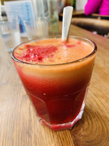 Read moreNice little cafe and restaurant. Some vegan options like soup and salad, all organic. Wish they had vegan backed goods and more vegan protein options. They have some tasty and creative juice mixes / smoothies. There is an actual shop with fruit and veggies to buy. Good coffee with vegan milk alternatives and very...