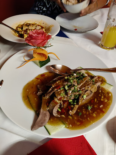 Wieso scheinbar immer ich? [Warnung!] Will niemand in den Wok hauen, aber nachdem ich regelmäßig auf dem Schnauferlberg am "neuen" Restaurant, das wohl seit zwei Jahren existiert und so gut wie immer leer zu sein schien, vorbeigefahren war, bestellte ich heute zur Abholung, auch wegen der Googlerezensionen mit Durchschnitt 4,6: Es klingelte sechsmal durch, jemand hob ab, nieste, entschuldigte sich dafür und bejahte, dass ich richtig sei. Ich bestellte C1 und M2. Rindfleisch scharf und eine Nudelsuppe auch scharf. Bei Abholung am Freitagabend um 20 Uhr nur zwei Tische im doch großen Saal besetzt. Empfang freundlich und eigentlich eine interessante Location mit Karaoke, Darts und Billiard am Eingang und im Nebenraum. 27 € (Rechnung 26,40€) bezahlt. Das Essen war mitunter das schlechteste, was ich je gegessen habe. Hier kocht wohl der Chef mangels Koch selbst. Suppe mit viel zuviel Kardamom und ölig. Das Hauptgericht verbrannt, ölig und Rindfleisch schleimig. Wegen Hungers erst einmal unbedacht konsumiert. Habe gerade echt Angst um meine Gesundheit (editiert einen Tag danach: bisher nichts Bemerkbares oder Übelkeit). Glücklicherweise haben nur zwei Leute recht wenig probiert. Rest entsorgt. Wenn der Betreiber nicht sein Geld mit etwas anderem verdient, ist das Lokal...