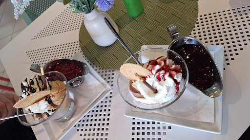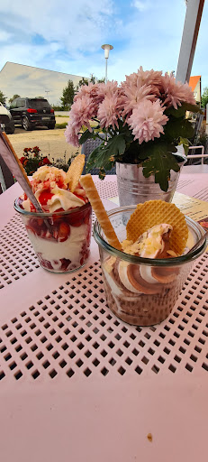 Das Eis war wirklich gut, allerdings sollten die Inhaber ein paar Dinge überarbeiten. Die Zeit von Bestellung aufgeben, erhalten und begleichen ist nur eines der Punkte. Die Bedienung ist oft gestresst und im Ton eher Bahnhoffrittenbude. Nichts für ungut, sie geben sich Mühe. Die unterschiedlich gestalteten Eisbecher und öfter Verwechslung von soft und kugeleis Überarbeitungsfähig. Auffällig ist bereits jetzt ein häufiger Angestelltenwechsel. Ich war nun jede Woche dort und ständig sind andere Gesichter dort. Das ist sehr schade . Und auch der nette "Smalltalk" den ich einfach sonntags in einem Café erwarte ist nicht mehr wie am Anfang. Schade drum. Sonst sind wir zufriedener nach Haus gefahren und wir sind jeden sonntag extra aus Güstrow angereist, u.a. wegen der wohligen Atmosphäre die einem die u.a. Bedienung dort gab. Ich hoffe auf baldiges einpegeln und das sie den Zauber des Anfangs wieder entdecken und nicht...