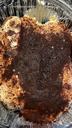 Das Tiramisu allerdings gibt mir doch ein wenig zu denken, denn wir sollten uns eins aus dem Kühlschrank holen (nichts dagegen einzuwenden). Zu Hause dann allerdings die sehr unschön Überraschung nach dem ersten probieren. Sehr saurer Geschmack, und bei näherem hinsehen dann Schimmel auf der Oberfläche zu erkennen!! Angerufen, Problem geschildert und dann kam die Aussage das Tiramisu maximal 2-3 Tage alt sein kann. Es wurde mir zwar ein kostenloser Ersatz angeboten den ich abholen kann, aber da muss ich dankend ablehnen aus Ekel. Das Sahne kippt kann immer mal passieren, aber für Schimmel braucht es schon etwas mehr, z.B. fehlende Hygiene, etc.