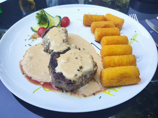 Voller Vorfreude wollte ich mir ein gutes Stück Fleisch gönnen, da die Rezensionen ja sehr positiv sind, leider aber würde ich enttäuscht. Ein gutes Drittel von meinem Fleisch war mit sehnen durchzogen. Für den Preis erwartet man bessere Qualität. TK Kroketten und das alles auf einem Pizza-Teller serviert. Gar nicht stimmig mit dem wunderschönem und stilvoll eingerichteten Ambiente. Das war das einzig gute am Aufenthalt. Auch, wenn das Restaurant an der Straße liegt, fühlt man sich selbst draußen im Garten fast wie im Urlaub mit den schönen Pflanzen, der Einrichtung und Deko. Sehr enttäuschend war die Reaktion der Dame auf mein Feedback zum Fleisch. Es ist argentinisches Fleisch und es ist eben so. Eben nicht, aber gut! Professionell war das nicht und schade fanden wir auch, dass wir als quasi alleinige Gäste dort vergessen wurden. Lediglich die Bestellung wurde aufgenommen und zum Tisch gebracht. Wenn ich Mal äußerst selten ein negatives Feedback äußere, erwarte ich keinen Rabatt o.ä. - ich möchte, zumal auf Nachfrage einfach nur meine ehrliche Meinung geben, damit man dementsprechend für die nächsten Gäste schaut, dass das nicht nochmal vorkommt. Mit so einer Antwort fühlt man sich veräppelt. Leider der erste und letzte...