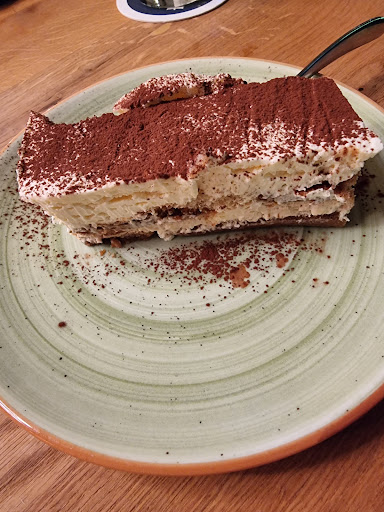-Nachspeise Tiramisu. Und das war wirklich das schlechteste Tiramisu was ich in meinem Leben gegessen habe. Das hat mit Tiramisu nichts aber wirklich nichts zu tun. Viel zu flüssig und vom Geschmack her wie gefrorenes Wasser. Ich unterstelle niemanden etwas, aber die Vermutung liegt nahe, dass hier aufgetaut wurde oder ähnliches.