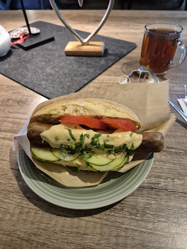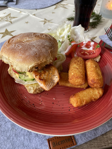 Sehr freundliche und lockere Bedienung. Innen modern und ansprechend. Der Außenbereich ist eigentlich auch einladend dort zu sitzen, aber er wirkte bei unserem Besuch nicht gepflegt. Was womöglich dem unbeständigem Wetter zuzuschreiben ist, bei dem sich viel Mühe draußen zu machen vielleicht nicht lohnt. Das Essen war lecker, ausreichende Portion und ein sehr ! fairer Preis für die heutige Zeit Ich hatte einen Burger. Der hat gut geschmeckt. Und schien auch wirklich selbstgemacht vom Bun über Soße bis zum Fleisch. Allerdings war es nicht wirklich ein Burgerpatty, sondern eine Frikadelle. Wie gesagt: Schmeckt! Nur nicht nach echtem Burger. Meine Begleitung hatte ein Filetgericht und war gut zufrieden damit.
