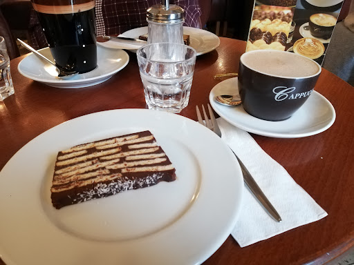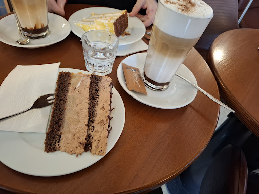 Read moreSämtliche Kaffee-Getränke und auch der Kakao waren bislang immer spitze. Der Kuchen hingegen… zu süß, künstliche Aromen und eine Konsistenz, als hätte man Öl mit bastelkleber verrührt. Mehrere Versuche gehabt, allesamt durchgefallen. Also: nur noch für Kaffee und den Kuchen woanders kaufen. Der bezahlvorhang wirkt auch noch sehr stümpferhaft, das Personal sehr gestresst an der Stelle. Da muss noch nachgebessert werden an einigen Stellen, ich freue mich aber, dass das Café in der Prime Location erhalten bleibt. Bitte neuen Konditor und das mit der Kasse etwas üben....