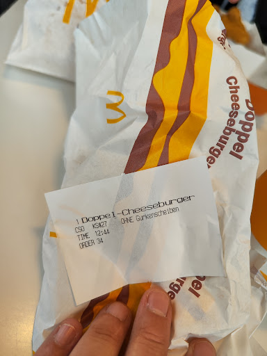 Essen ist ok. Wartezeiten sind auch durschnittlich aber ein Rat an jeden! ĂberprĂŒft IMMER eure Bestellung. Dort wird so hĂ€ufig was falsch gemacht.. (ich gehe ca. 5-7 mal im monat zu diesem MC donalds) und im durchschnitt stimmt bei jeder 3. Bestellung bei mir was nicht. Gerade erst heute mal wieder. Ich bestelle 2dopple cheese, 9er chicken nuggets, 1x big mac und 3x chicken burger. Stand auch alles so exakt auf dem kassenzettel aber keine spur von den 3 chickenburger im wert von 4,77⏠danke mcdonalds fĂŒr die abzocke. Leider habe ich das erst zuhause bemerkt und jetzt reicht es mir gestrichen. Ăndert was an eurem personal. Jeden 3. Bestellung stimmt nicht. Das kann doch nicht wahr sein! Ich fahre dort nie wieder hin. Jetzt habt ihr einen treuen kunden verloren. Ab jetzt nur noch burger king. Da ist das fleisch sowieso besser. Ach so und wenn wir schon uns darĂŒber beschweren mĂŒssen, dann mach ich es gleich richtig, letztens war sogar ein 20cm langes haar in mein mc sunday (eis) selbst da habe ch noch ein auge zu gedrĂŒckt aber mir schon 4,77⏠abziehen geht zu weit. Letztens habe sie sogar ein big mac vergessen, das habe ich aber zum glĂŒck bemerkt und reklamiert. Dann habe sie schon paar mal meine sĂŒĂ sauer soĂe vergessen. was auch gerne vorkommt, dass sie auf dein hamburger einen kĂ€se scheibe drauf legen und ihn so zum cheeseburger machen. Dann haben sie schon statt mir ein dopplecheeseburger zu geben, einen "M spezial" gegeben der eine furchtbar schmeckende soĂe hatte und so uverzehrbar war. Und noch mehr sachen die ich jetzt nicht mehr aufzĂ€hlen werde.