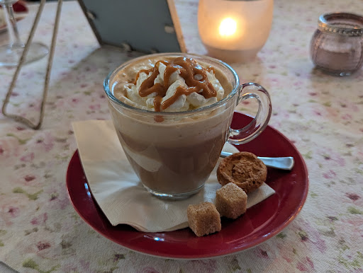 What a surprising gem this is! While I do find the decorations a bit overdone this place is for those who like it like my wife and children. We just stopped for some cake and coffee but I am sure this is a great place to go for a drink in the evening. The cake was great, but it's a stretch to judge the kitchen from that sou you will have to come and try it out yourself. Don't be put off by the french name and styling, the menu is international with a strong Italian drift I would say. What really got me was the "drunk espresso" two shots of espresso with a scoop of vanilla ice cream. I have been touring Germany looking for great espresso and this "french restaurant" is where I find my dream cup? The amazingly strong aftertaste of nuts really got me and I even asked to make sure it was not flavoured Coffee. (Which I believe I would have noticed but I wanted to make sure.) A place I want to come back to for sure, Stendal is full...