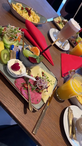 Read moreAls absolutes Plus möchte ich die Freundlichkeit und den angenehmen Umgang hervorheben. Das Essen war sehr appetitlich angerichtet und soweit ich es als nicht Rollstuhlfahrer beurteilen kann, war ein barrierefreier Eingang und eine Toilette vorhanden. Ansonsten fand ich es sehr mittelmäßig. An einem Samstag gegen 10:30h war es brechend voll, die Tische stehen relativ nah aneinander ohne irgendwelche Schallbrecher dazwischen und dadurch war es sehr laut. Eine angenehme Unterhaltung war nicht möglich. Wir wurden schnell und freundlich bedient, das Frühstück kam sehr schnell. Allerdings hätte ich bei meinem Frühstück zwischen Rühr- oder Spiegelei wählen können, ich hatte vergessen zu erwähnen was ich möchte, wurde auch nicht danach gefragt und so wurde mir einfach Rührei gebracht. Die Marmelade ist nichts besonderes, sondern die eher die günstige süße Sorte und Wurst bzw. Käse besticht auch nicht durch Metzgerqualität. Auf unsere Getränke zum Frühstücksangebot mussten wir eine ganze Weile warten, was mich sehr störte und eine zweite Tasse Kaffee schaffte ich nicht zu bestellen, da niemand in unsere Richtung blickte oder nachfragte. Bei meiner Begleitung fehlte der Eierlöffel, er hat wegen der fehlenden Aufmerksamkeit schließlich seinen Kaffeelöffel benutzt. Es gibt nur zwei Toilettenkabinen für Mann/Frau/Divers zusammen, da entstand schon mal Stau bei den vielen Kunden. Zum Bezahlen mussten wir einige Zeit winken bis uns jemand bemerkte, um uns dann zu sagen, dass wir das an der Theke machen müssten. Dort standen wir dann wieder an. Wir wurden gefragt, ob bar oder mit Karte und Trinkgeld konnte mit eingebucht werden. Im Großen und Ganzen ist es in Ordnung, aber wird nicht mein...