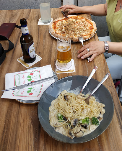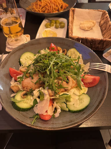 Read moreBin hier absolut gespalten. Wir bestellen hier regelmäßig, weil die Pizza wirklich sehr gut ist. Heute via Lieferando dann mal Vorspeisenteller, Salat, Risotto, Brühe und Scaloppine bestellt. Fazit: völlige Enttäuschung. Brühe ideenlos und völlig versalzen mit langweiligen Fertigtortellinis, preislich zudem zu teuer. Beim Vorspeisenteller hatte ich auf eine Auswahl der anderen angebotenen Vorspeisen gehofft (es war nichts genaues auf der Karte angegeben), tatsächlich kam eine etwas wilde Mischung aus eingelegten Sachen, etwas gegrillten Gemüsescheiben, Käse, Mozarella und einer italienischen Wurst. Kann man machen, war aber in Summe überhaupt nicht harmonisch und belanglos. Beim Salat stimmte zumindest der Gargrad des Hähnchens, aber der Blattsalat enthielt teilweise dicke Endstücke nah vom Strunk und war völlig verwässert, weil nicht richtig getrocknet, insgesamt ziemlich langweilig angerichtet und gedresst. Scaloppine mit Tomatensauce waren absolut langweilig gewürzt und die Sauce erinnerte geschmacklich und von der Konsistenz eher an Tütentomatensuppe. Kein Pfiff, keine Rafinesse, das können sogar viele Kantinen deutlich besser. Den Vogel abgeschossen hat aber das Risotto, das alles war - nur kein Risotto. Völlig fade, wässrige Reispfanne mit wilder Gemüsemischung - zum Abgewöhnen. Man merkt es meinen Zeilen an: ich bin extrem enttäuscht von den kulinarischen Leistungen jenseits der wirklich tollen Pizza. Gäbe es die Pizza nicht, wäre das hier eine Ein-Stern-Rezension geworden. Schult bitte dringend euer Personal oder besorgt euch einen Profi, ansonsten ist das der...