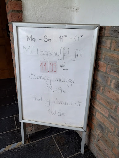 Read moreService Gut Schnell und Freundlich, Einrichtung sehr altbacken ungemütliche Stühle wackelnde Tische, Zum Essen das einzige was ok war war der Salat, Auswahl am Buffet okay, Qualität des Essen schlecht, Erbsen und Möhren aus der Dose, Lasagne geschmacklos generell scheinen die Köche das essen nicht zu würzen, essen teilweise total überkocht, ich hab fast alles probiert und die gebotene Qualität war unterirdisch. 18€ kostet das ganze an einem Sonntag was eigentlich günstig ist aber nicht mal die 18€ ist das essen wert. Sehr schade und nicht...