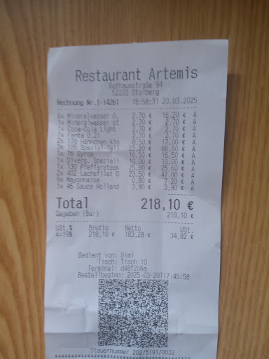Einziger Wermutstropfen war jedoch der Service: Als wir nach einem Ouzo als Verdauungshilfe fragten, gab es einen unpassenden Kommentar vom Kellner. Statt einer freundlichen Antwort auf unsere Bitte, meinte er, dass er uns „jetzt keine 20 Ouzo bringen könne“ – was sehr unhöflich und nicht sehr professionell wirkte, zumal wir keine 20 sondern nur 5-6 Ouzo bestellen wollten. Daher nur 2 ⭐️