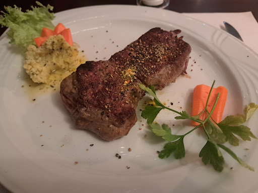 Im großen und ganzen muss man einfach sagen, dass es eine sehr gute wahl ist dort essen zugehen. Die Karte bittet eine grosse und breite Auswahl an Gerichten an, für gross, klein und coolerweise sogar Seniorenteller 🙂 das essen ist wirklich es klasse für sich, steak auf den punkt medium gebraten und noch schön saftig sowie butterzart zum schneiden, ein Genuss PUR! Einen Extra Punkt gibt es für das preisleistungverhältniss, dass man in der aktuellen Zeit wo alles so teuer geworden ist , noch so normale gute sowie faire Preise noch anbietet ist mega. Damit setzt man sich von dem Umfelde deutlich ab, ohne das die Essensqualität darunter leitet.