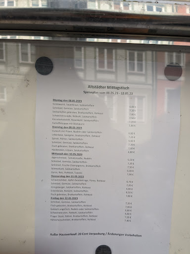 Read moreGut und günstig!!! Die Mitarbeiter sind immer freundlich und auch mal zu einem Scherz aufgelegt! Zur Mittagszeit geht es ratz fatz, wie im Taubenschlag :) Der Mittagstisch ist zentral in der Altstadt gelegen. Serviert wird typisch norddeutsche Hausmannskost ohne viel Klimmbimm, Brimborium und Schikimiki. Wechselnde Tagekarte, mit wöchentlichen Klassikern, z.B. dem "Jägerschnitzel-Mittwoch" (mit Nudeln und Tomatensauce). Ich esse dort regelmäßig und das seit vielen vielen Jahren. Noch nie hat es schlecht geschmeckt!!! So mag ich es, so soll es...