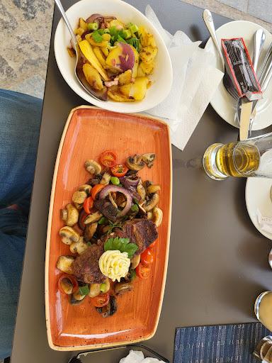 Read moreHervorragendes Restaurant direkt neben dem Ozeaneum am Hafen. Wir waren heute mit unserer Dreijährigen dort und hatten eine wunderbare Zeit. Die Bedienung brachte uns ohne Bitte oder Hinweis die Speisekarte für Kinder, die auch zum Ausmalen gedacht war und dazu Buntstifte, worüber sie sich natürlich sehr freute. Wir bestellen einen hausgemachten Flammkuchen mit Lachs und ein Rumpsteak mit Pilzen und Bratkartoffeln, wie auf den Bildern zu sehen ist. Was soll ich sagen. Das Rumpsteak war eines der Besten, das ich jemals gegessen habe. Es war auf den Punk gebraten wie bestellt, die hausgemachte Kräuterbutter ein Gedicht, die Pilze mit Cocktailtomaten und Zwiebeln absolut frisch und die Bratkartoffeln ebenfalls überdurchschnittlich gut. Auch der Flammkuchen konnte auf ganzer Linie punkten. Selbst die "Standard-Pommes" für unsere Kleine waren auf den Punkt. Das Personal war stets freundlich, professionell und aufmerksam. Unsere kleinen Sonderwünsche wurden auch zu 100% ohne Probleme berücksichtigt. Die Tische und Stühle waren sehr sauber und sobald Gäste ihren Platz verließen, wurde direkt ordentlich gereinigt. Preislich war alles absolut nachvollziehbar und der Qualität angemessen. Wir haben sehr gerne ein hoffentlich ordentliches Trinkgeld für das schöne Erlebnis gegeben. Alles in allem kann man das Restaurant uneingeschränkt empfehlen. Wir kommen sehr gerne wieder und werden...