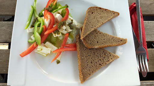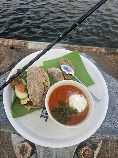 Read moreSchöne Lage direkt an der Mole mit Blick auf die Gorch Fock und die Rügenbrücke. Der Kellner bemühte sich redlich, aber es gab einfach zu viele Tische. Dadurch lange Wartezeit auf die Speisekarte, auf die simplen Gerichte und auf die Rechnung. Um 12 Uhr mittags gab es noch keine Fish&Chips, stattdessen orderten wir Matjesbrötchen (Imbissqualität) und einen dürftigen Hirtenteller, der mit 6,90 Euro überteuert wirkte. Die Rechnung stimmte leider auch nicht, musste korrigiert werden. Fazit: Besser nur für Getränke herkommen, die waren gut gekühlt und auch...