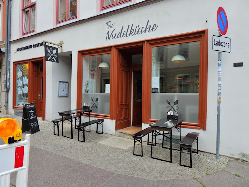 Read moreDieser Ort ist wohl etwas, was heutzutage als hip oder fancy bezeichnet wird. Es gibt frische Nudeln, interessante Saucen bzw Anrichtungen, aber am Ende des Tages überzeugt es nicht. Das nur wenige Plätze vorhanden sind und alles Recht eng ist, ist mit Sicherheit dem Standort geschuldet und sollte nicht weiter beachtet werden. Es entsteht ein Küchen-Feeling, als würden alle zusammen in einer Küche sitzen und es sich gutgehen lassen. Das haben die Betreiber wirklich gut hinbekommen. Dafür hat man beim Essen aber auch keine Chance für sich zu bleiben, da die Gespräche am Tisch direkt nebenan definitiv mithörbar sind. Getränkepreise sind okay, wir sind in Stralsund, da geht das in Ordnung. Nun zum Essen. Frische Nudeln - da gehört erstmal nicht viel zu, solang man auf der Karte keine anderen Produkte anbietet. Verschiedenste Pesti, oder andere Abmachungen werden angeboten, nicht immer ist alles auch vorhanden -spricht ja für ein gewisses Maß an Frische / oder weniger gute Kalkulation. Die Frische war aber definitiv gegeben, deshalb hier ein Pluspunkt! Aber: Es war zu wenig Sauce/Beilage/Pesto. Ein Teller voller Nudeln (wirklich viel - wir haben uns gefreut) benötigt eben auch ein gewisses Maß an Veredelung. Und wenn dann nicht genug Pesto oder was auch immer drauf ist, und das Öl auf dem Tisch der letzte Ausweg (es gibt Knoblauch-Öl, was aber sehr sehr mild ist) ist - dann möchte ich nicht von einem gelungenen Teller sprechen. Schade! Portion definitiv sehr gut, Ambiente akzeptabel bis laut, aber Abmachung ein klares Nein. Deshalb nur 3...
