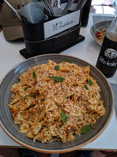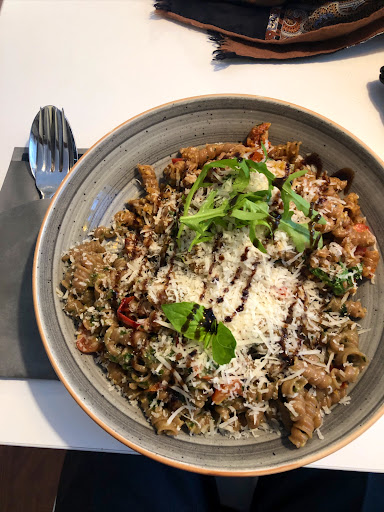 Read moreIch kann die guten bis sehr guten Rezensionen absolut nicht nachvollziehen. Wirklich nicht. Mein Fazit: Teuer und schlecht. Was für mich nicht bzw. überhaupt nicht funktioniert: der Preis von über 12 Euro pro Teller (für den großen Hunger) Nudeln vorgekocht und erwärmt, wodurch sie viel zu weich sind Fleisch (Pastrami) ist nicht etwa frisch vom Stück geschnitten, wie man es erwarten würde für den Preis, sondern wird fertig aus der Packung genommen und auf die Nudeln raufgelegt. zu wenig Pesto und zu viele Nudeln zu wenig Antipasti/Salat/Käse/Olivenöl im Verhältnis zu den Teigwaren kein Olivenöl auf dem Tisch süßes schwarzes Balsamico ungefragt über die Pasta/Teller gegossen „Knackiger Rucola” bedeutete in unserem Fall lediglich 3 Blättchen, die ganz welk wirkten Tomatensauce war so wenig, dass die Nudeln darin vertrockneten Preis/Leistungsverhältnis dass man nicht variieren darf die wortkarge Bedienung Was für mich gut funktioniert hat: die kühlen Getränke aus dem Kühlschrank (ein Stern) die Einrichtung die Idee an sich (zweiter Stern) das geschmackvolle Geschirr das teilweise freundliche Personal (-- Frau an der Kasse) die tollen Gewürzmühlen zum Nachwürzen die Pestos an sich sind lecker, wenn man eine gute Stelle erwischt auf dem Teller