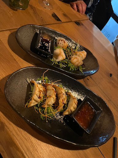 Wir(4 Erwachsene) sind nun das erste Mal in das Restaurant zum Essen gegangen. Das Ambiente: Top - sehr gemütlich und trotzdem sehr modern. Tolle Raumdekoration, tolles Geschirr. Tolle Wand- und Deckenverkleidung. Der Kellner: Top - sehr freundlich und sehr aufmerksam. Habe mich mit ihm nach Feierabend noch etwas vorm Restaurant unterhalten. Die Wartezeit nach der Bestellung: Top - relativ kurze Wartezeit, trotz großer Besucherzahl. Geschmacklich: Eigentlich Top Das Sushi war hervorragend. Das Gericht mit Reis, Gemüse, der Barbarbie Ente(medium) und der exzellenten Soße war vorzüglich. Die anderen Gerichte waren auch super, nur die Suppe fand ich sehr fad. Sie hatte einfach keinen Geschmack, obwohl in der Beschreibung stand "kräftige Brühe". Die Suppe schmeckte nur nach Wasser und nach Ziebeln bzw. nach Lauch. Das Hähnchen und die Nudeln in der Suppe hatten ebenfalls keinen Geschmack.