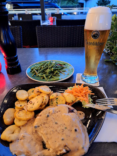 Read moreIch war mit meinem Freund am 29.02.2016 zu Gast. Eine TK (tiefkühl) Pizza hätte uns definitiv besser geschmeckt. Die Kellner: Wir wurden bedient, mehr aber auch nicht. Sie sind nicht aufmerksam, wir mussten sie rufen, wenn wir etwas wollten, unhöflich sind sie nicht, aber auch nicht zuvorkommend. Die Bestellung unserer Essen hat gedauert, weil der Keller unseren Tisch oft übersehen hat. Das Essen kam dafür um so schneller. Nach 10 Minuten hatten wir das Essen auf dem Tisch. Wer schafft es in 10 Minuten Essen zu kochen? Das Essen: Lachs: ungewürzt, sehr trocken. Der Lachs aus REWE von "ja" schmeckt deutlich besser. Die Portion war nicht klein, aber auch nicht in normaler Größe. Kroketten: die preiswertesten TK Kroketten, geschmeckt haben sie überhaupt nicht. Hüftfilet, well-done, dazu Mais, Bratkartoffeln und Pfifferlingssoße: das Fleisch war blutig mit einem Hauch von medium (hab ich reklamiert), Der Mais war wässrig und ohne Geschmack, die Bratkartoffeln waren nicht knusprig und aus einer Fertigpackung. Die Soße wurde vergessen, auf Nachfrage bekam ich die Soße: das war eine Fertigsoße aus der Tüte, die so dick wie Pudding war, nach nicht einmal 1 Minute war sie fest getrocknet und kalt. Da ich sie eh nur probiert habe und mir das Essen dann vergangen ist, tangierte mich das auch nicht mehr. Dazu lag auf meinem Teller und dem Teller meines Freundes ein überdimensional großer Klecks Ketchup-Majo-Gemisch (was keiner bestellt hatte), es hat nicht nur ekelhaft geschmeckt, sondern sah auch noch sehr eklig aus. Am Ende gab es die Rechnung, kein Schnaps, keine Entschuldigung, dass mein Fleisch falsch gebraten wurde, kein nichts.