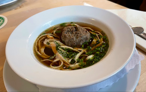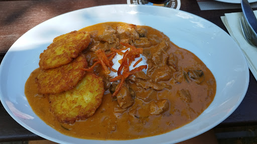 The restaurant offers an interesting and creative variety from traditional Franconian dishes, to inspired variations thereof and even a touch of Asian cuisine. While there seemed to be ample seating inside, it never hurts to give them a call and reserve ahead of time. There's also some outdoor seating, where you'd be allowed to bring your dog (not allowed in the...