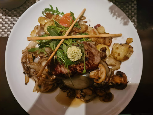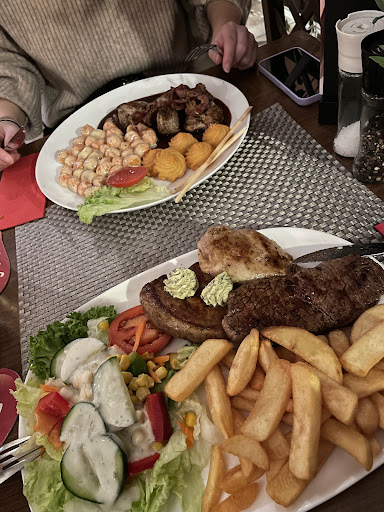 Read moreWir waren zu zweit da, haben uns eine Vorspeise geteilt und 2 Hauptgerichte bestellt. Bei der Vorspeise „überbackener Hirtenkäse“ kann man noch einiges rausholen. Dem gaben wir eine 6,5/10. Als dann unsere Hauptgerichte kamen, waren wir von der Menge an Portion sehr überrascht. Also da darf man nicht meckern für den Preis. Wir hatten einmal das Gericht „Pier 39 / Schweinefilet im Speckmantel“ und „Frisco / Steakteller“ jeweils mit einer kleinen Beilage die zum Gericht gehört. Ich habe das Rumpsteak Medium bestellt und es kam auf dem Punkt Medium! Des Weiteren gab es bei dem Steak Teller ein Stück Schwein und ein Stück Pute, beide sehr saftig und nicht tot gebraten. Allein dafür gibts schon 5 Sterne an den Koch. Das Schweinefilet beim anderen Gericht war ebenfalls schön saftig und der bacon schon knusprig. Im Großen und Ganzen gibt es nichts zu meckern. Durch das City for Two Buch hatten wir sogar ein Hauptgericht kostenfrei. Aber auch ohne dem Buch wäre der Gesamtpreis inkl. Getränke mehr als...