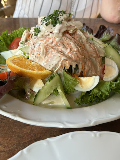 Nach 40 min bekamen wir unseren bestellten Salat als Vorspeise. Nicht von selbst, sondern auf Nachfrage, da einige Gäste die weit nach uns kamen ihre Vorspeise schon hinter sich hatten und schon ihren Hauptgang bekamen. Uns kam das dann doch etwas seltsam vor, denn voll war es zu dem Zeitpunkt nicht. Die Worte daraufhin waren „wurde an den Falschen Tisch gebracht“. Kein Wort der Entschuldigung. Und statt den 2 zusätzlichen Tellern dazu was wir vorher angemerkt hatten kam nur einer. Den 2. haben wir uns dann drinnen selbst organisiert.
