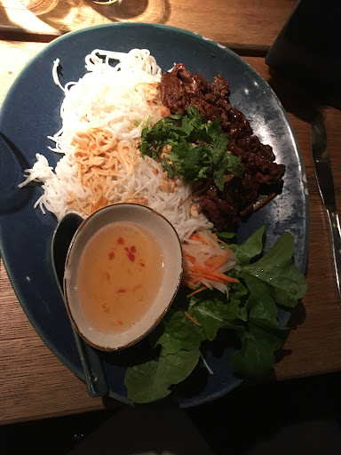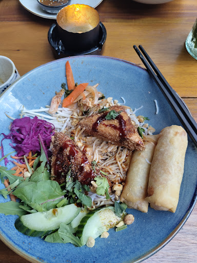 Read moreSo I don't think everything needs to be traditional. Fusion or modern versions are fine as well. But not like that. My bun tofu was weird. The tofu was kinda like a katsu, but good, soft inside, crunchy outside. The spring rolls fine as well but probably pre-made. The rest was confusing to say the last. It came with kimchi, however such little qualities of kimchi that the question raises why it's in the bowl at all. Furthermore there was peanut sauce in my bun... Mh okay. Also we can't forget the arugula that was in that bowl, combined with the traditional mint. Please commit to either one of those things both together does not work well in my opinion. Also why red cabbage? If you add either one of those things as a little twist all right with me, but why all together? It seems like the person who created this dish did not think about how flavors should work together. It feels like the components are working against each other...