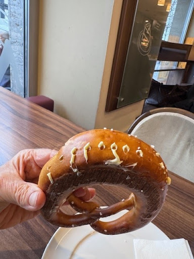 Auf Nachfrage erfuhr ich von der Bedienung, dass es wohl eine neue Maschine gäbe, die das Aufschneiden und Bestreichen der Brezel durch das Befüllen ersetzen würde. Und hier liegt das Problem: Von Butter war in dieser Brezel so gut wie nichts zu finden! Sie war extrem trocken und hatte nichts, aber auch gar nichts mit einer Butterbrezel zu tun.