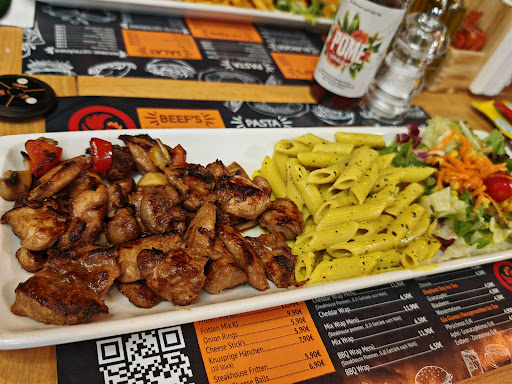 The menu is a bit confusing and not easy to understand but the waitress explained everything to us. There are 4 menu concepts: Chicken + 1 sidedish (fries/rice/pasta) + Salad Beef + 2 sidedishes (fries/rice/pasta) + Salad Burger + Fries + Softdrink Wraps + Steakhouse Fries + Softdrink