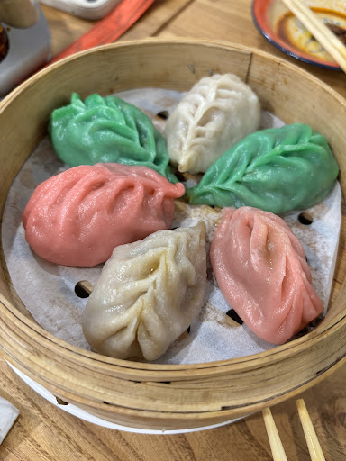 🤣 No. Though they boast two types of handmade dumplings (these is dumpling making performance at the counter), this is most decidedly NOT a dim sum restaurant. We had both the Xiao Long Bao (soup dumplings served as set of 3) and the handmade dumplings (multicolored is chicken, pork & veggie versions served as 6). We also tried the fried dumplings, which were the same handmade dumplings as the steamed version (not the stock photo potsticker/gyoza from the menu). Ironically, these were soupy, while 5 of 6 of the XLB had zero broth. The handmade dumplings had so much better construction & flavor, but still lacked the fresh ginger & herb flavors I prefer. The saucer they give you to mix dipping sauce is absurd & you have to waste a lot of vinegar & soy to fill the plate.