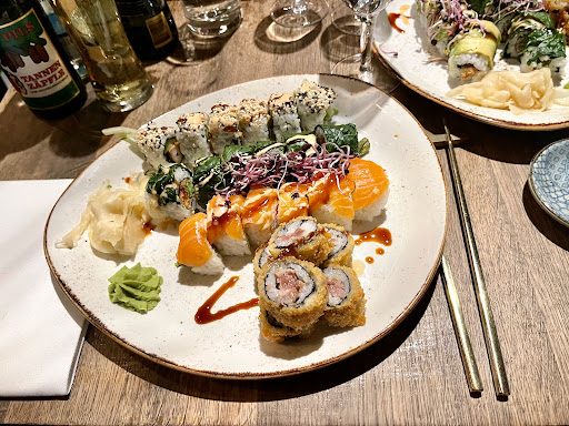 Read moreNot really a Japanese sushi restaurant, but still excellent food here. Supposedly a Vietnamese operator with super-trained, fast and friendly staff conjures up really great sushi variations here. Due to years of success, the place is now very busy. If you book well in advance, you get a table for a 90-minute time slot. After that, the next guests are already waiting. The fast service and the quick cuisine nevertheless make a multi-course menu possible. The actually cosy interior is optimized for the maximum number of tables. This means that you sit extremely close together, almost on the lap of the next table. Hence maximum stars for the food, less for...