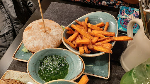 Read morePlace is great but make sure to have reservations else it gets difficult. We ordered the veggie/vegan burgers and they certainly were amazing. We went for the abends menu (evening/dinner menu) We ordered the grünschnabel which was a basilikum drink. I liked it a lot ad it was refreshing. However the other drink called Brombeer was not really great. We also got ice which was piled on even over the glass limit, which made it impossible to stir without continuously dropping ice all over. The hostess did ask the bar tender to remove the extra ice though upon us making it evidently clear that it's not the best option for a drink. The burgers themselves were excellent, both Naturbursche and Abendrot. Again here we asked for a white sauce which would be minty but got recommended the Krauter Soße, a very oily green sauce that of course cannot compliment the fries :) On the other hand my choice of Avocado sauce was impeccable and...