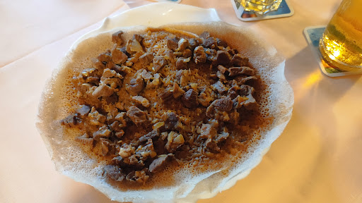 Read moreWir sind zu 4. dort hingegangen. Erste Enttäuschung es gibt in der Speisekarte keine Speisen für mehrere Personen. Auf die Nachfrage ob sie für 4 Personen eine Platte anrichten können würde das bejaht. Als die Platte gebracht wurde waren nicht mal zusätzliche fladenbrote dabei. Nur die auf dem Teller. Die sind bereits von der Salatsoße eingeweicht gewesen. Satt geworden sind wir 4 auch nicht. Separate Soßen war leider auch ein wunschgedanke. Der Gipfel war dann die Rechnung. Allein für die Platte über 60 Euro. Es war auf Nachfrage die probierplatte 4fach auf eine Platte gemacht. Und wir mussten den 4 fachen Preis bezahlen. Da hätten wir gleich 4 einzelne Platten bestellen können und hätten garantiert mehr davon gehabt. Das Personal hat weniger Arbeit bei einer großen Platte. Auf Nachfrage ob da was am Preis geht wurde uns gesagt das es ja normal sei wir hatten ja 4 probierplatten gehabt. Bei der bestellung hatten wir aber gesagt das wir das erste mal afrikanisch essen und bitte eine Auswahl auf der Platte haben möchten. Ebenso haben wir nach dem Essen keinerlei Tücher bekommen um uns die Hände sauber zu machen. Uns wurde bereits schon öfters über Afikanische Restaurants erzählt. Das Harambe Afrika passt zu den Erzählungen uberhaupt nicht. Fazit nicht empfehlenswert. Überteuerte Preise für das Essen und den Service. Dort werden wir nie mehr hingehen und auch eher davon abraten wenn wir danach...