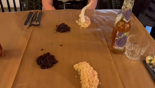 Wir konnten das risotto beim so wie fast alle Soßen und den Kuchen mit den Kirschen nicht essen. Das essen besteht leider aber auch nur aus 2 Gängen und somit viel einiges weg.