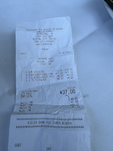 It's a beautiful place to have delicious Greek food amidst nature and fresh air during the summer months. The waiters are very attentive and give great care to the customers. I had been here on a summer evening for dinner. I opted for a Lamm Teller. It comes with a healthy salad, option of Special Kartoffel served at this restaurant or Pommes and a portion of bread. The Lamm teller had 3 pieces of grilled Lamm Kotlet and 1 portion of Lamm Spiese along with the special kartoffel of this restaurant. My friend had Calamari, it was specially cooked unlike the usual way found in other Imbiss or German Restaurants. I also had a Dessert in the end. It was a nice one, similar to baklava served hot along with Vanilla Ice Cream. The ambience was very good and the outdoor seating is the best part of this restaurant on the hill top. It's quite close to Waldau U Bahn station and is easy to reach from down town. Only the owner of the restaurant comes to collect the bill, he prefers it if we pay together than individually. He doesn't even ask if we pay together or individually. Overall this is a very nice place to spend time and have a relaxed evening with good Greek and...