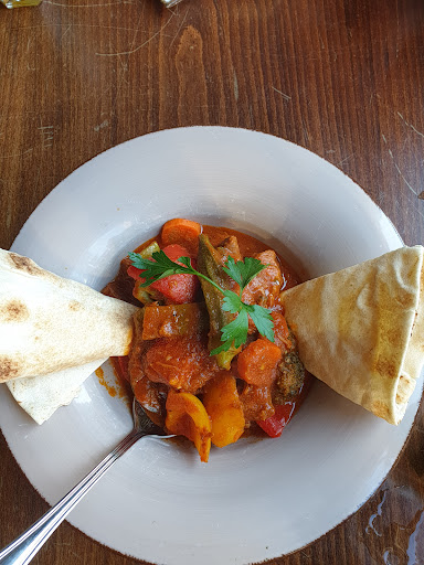 Read moreI don't usually write negative reviews, but for this one I have to make an exception. Service was good, and the cocktails were ok, but other than that the food was very disappointing. I was poorly portioned, not very tasty and ridiculously overpriced for what it was. I'd say it's more of a place to go for atmosphere and to sit on the sand area as a novelty if you can get a space there. "Chapati" starters were not the indian flat bread we expected, but cheap crisped up bits of flat bread. The vege selection was a selection of some of the veggie mains. All pretty bland, but the spinach one was ok. It was very small portion for a main. Seemed a bit like a starter. Tiny portion of rice in the middle and like one piece of feta in the feta/pepper section.
