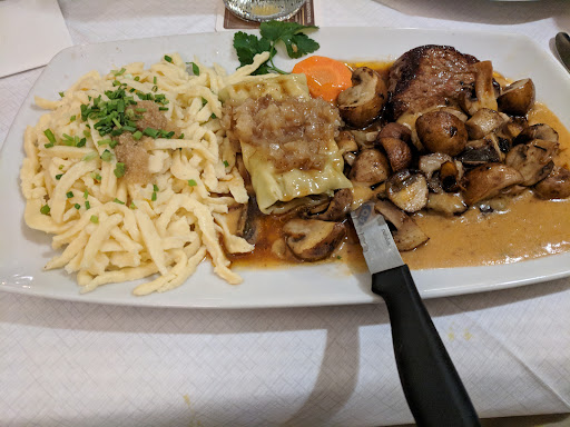 Read moreIf you are looking for authentic German food, you can't go wrong with Marktstüble. This is a very good restaurant that specializes in Swabian food. Spätzle, Maultaschen and Wurst are excellent. The Spätzle appears to be made on site and from scratch as is tasty the sauce that accompanies it. They have the best Maultaschen (a kind of German wonton, served in soup or not) that I have ever tried. The steak I had was perfectly seasoned and prepared to my exact liking. The potato salad is also a must have. The potatoes have an amazing texture and flavor. For drinks, they have a nice variety of beers which are served in very big mugs. They even have an alcohol-free Hefeweizen! The wine here also is highly recommended and they have a nice selection. While this place has a mom and pop feel and is very cozy, it can also be considered quite a romantic place. The restaurant overall is clean as are the kitchen and prep areas. The restrooms were also neat and tidy. The wait staff is very friendly. I was greeted with a big smile from each of the staff with whom I had an interaction. The main waiter was exceptionally nice and offered recommendations for first-timers, explaining a bit about some of the dishes. A major bonus is that speak a few of the staff speak very good English. This place is awesome dining in the heart...